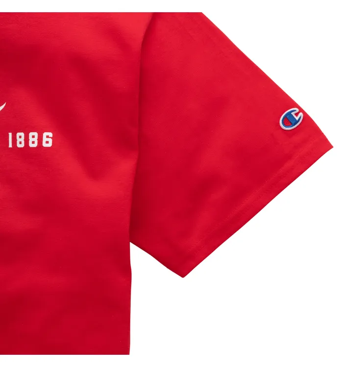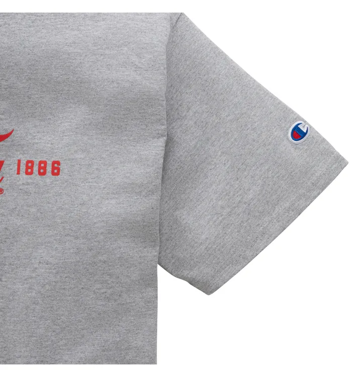 This soft cotton tee from Champion features a large screen print detail on the chest.